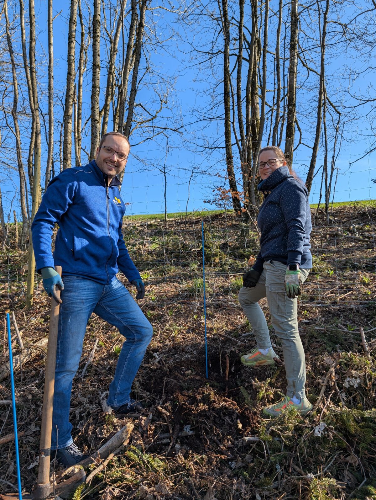 Heute hat das Nachhaltigkeitsteam der ewk bei einer gemeinsamen Pflanzaktion mit myreforest gGmbH und dem Forstprofi Sebastian Fleischmann tatkräftig mit angepackt – und das Ergebnis kann sich sehen lassen! Auf einer brachliegenden Waldfläche zwischen Wagensteig und St. Märgen, nahe den Schweighöfen, wurde eine ehemalige Fichtenmonokultur, die durch Trockenheit und Borkenkäferbefall stark geschädigt wurde, wiederbelebt. Wir haben insgesamt 400 Laubbäume gespendet …