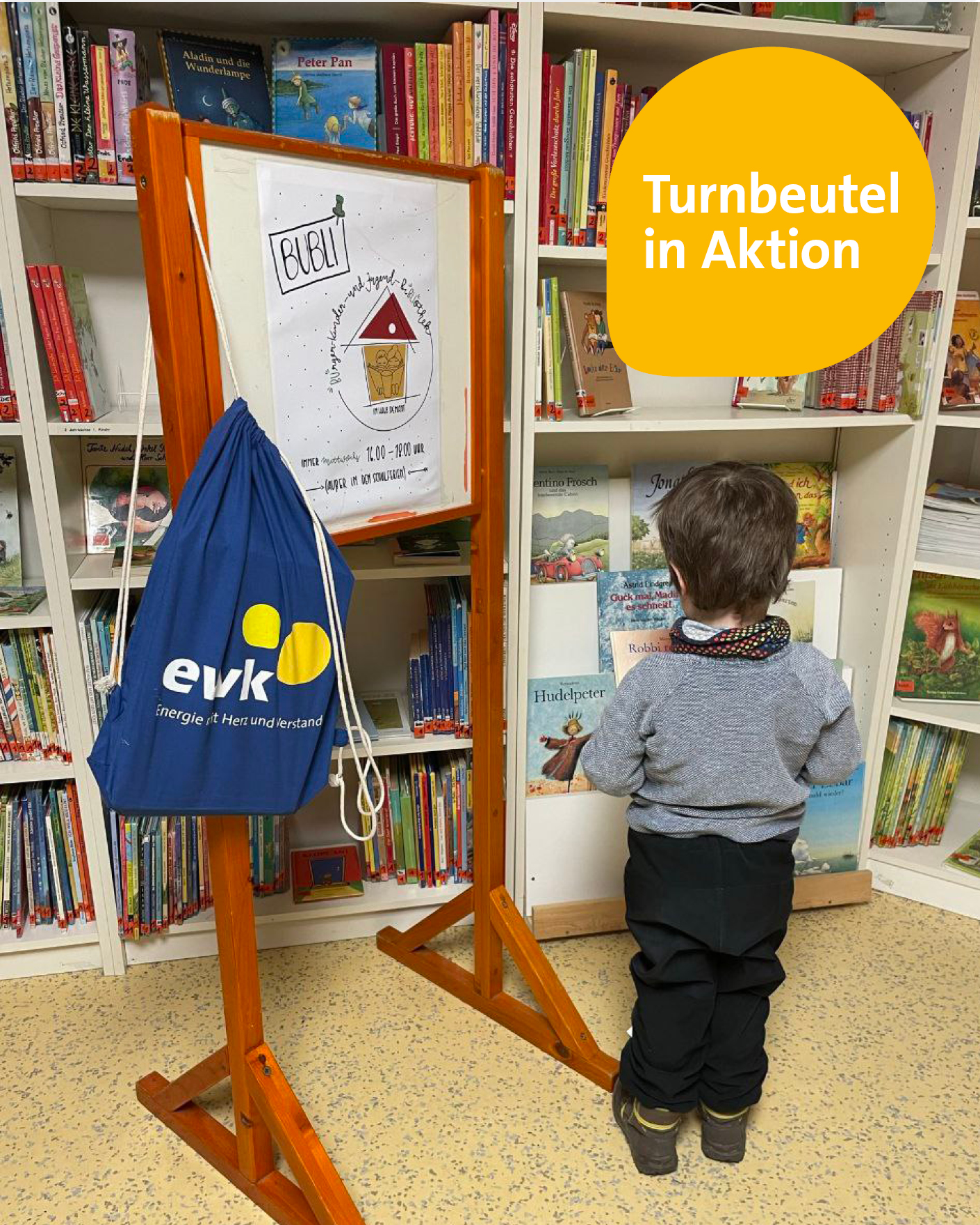 Die ewk-Sportbeutel sind seit September im Einsatz und die Kinder des Burger Kinderhauses lieben sie! Mit ihren Namen bedruckt und den Bändeln verkürzt, können die kleinen „Trolle“ und „Riesen“ die Sportbeutel als Rucksack nutzen. Jeden Monat machen sie sich auf den Weg zum Haus Demant, um neue Bücher auszuleihen. Die Kinderbücherei Bubli in Burg-Birkenhof ist jeden Mittwochnachmittag von 16 – 18 Uhr für Jedermann geöffnet.
